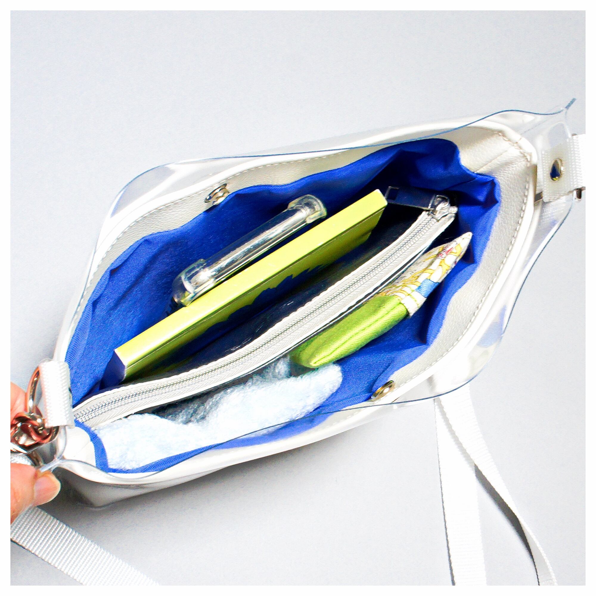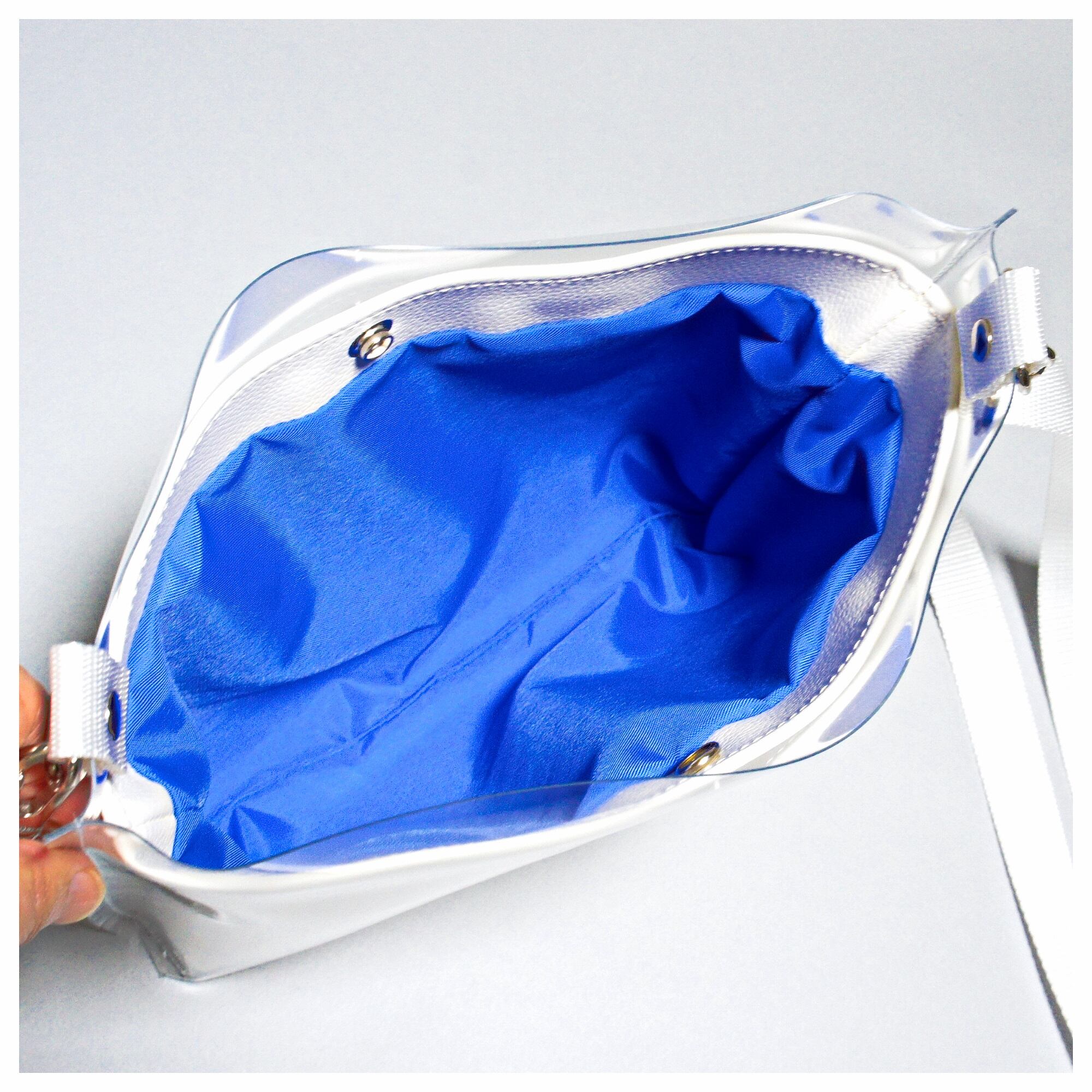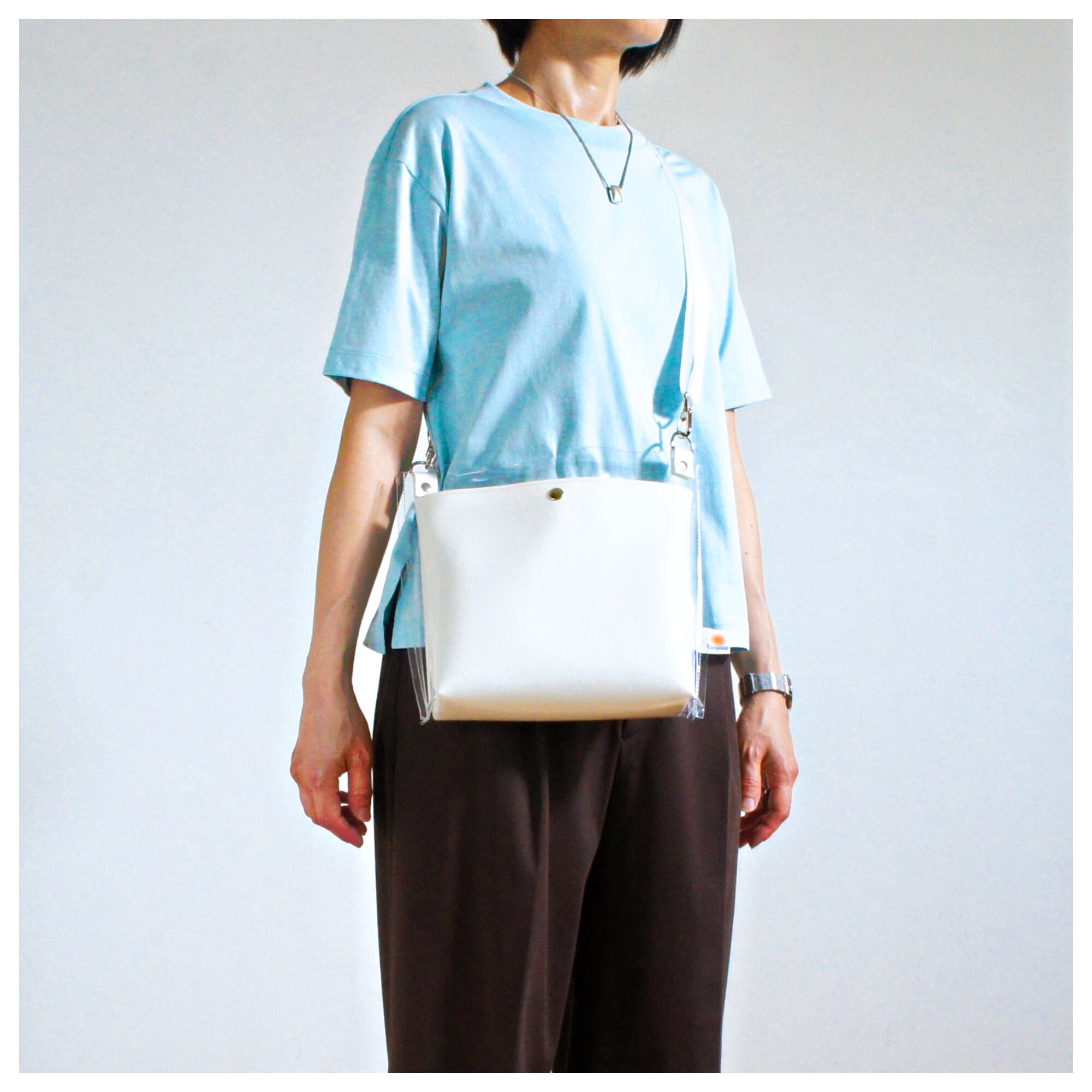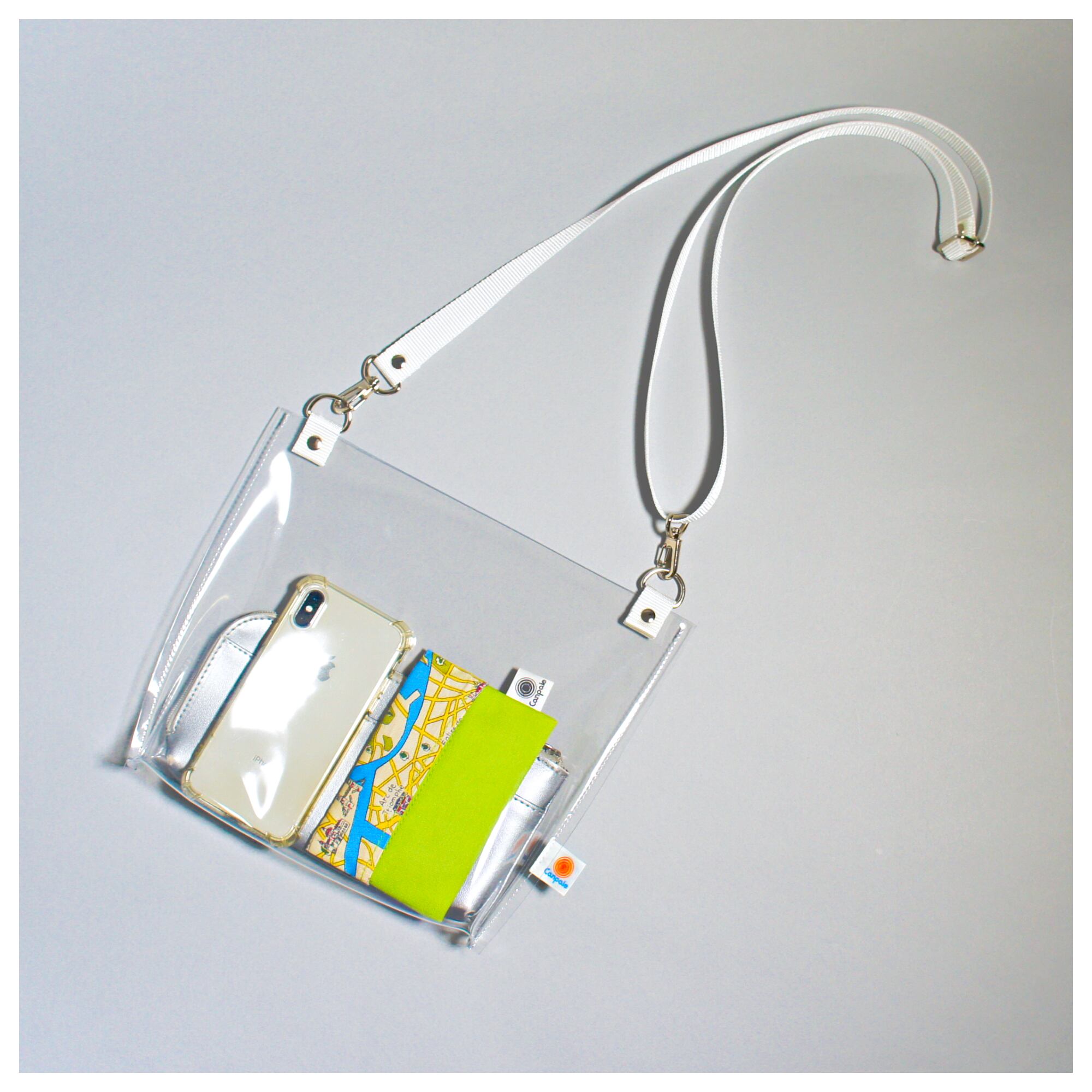 クリア&オフホワイトという爽やかなビジュアルのサコッシュは、