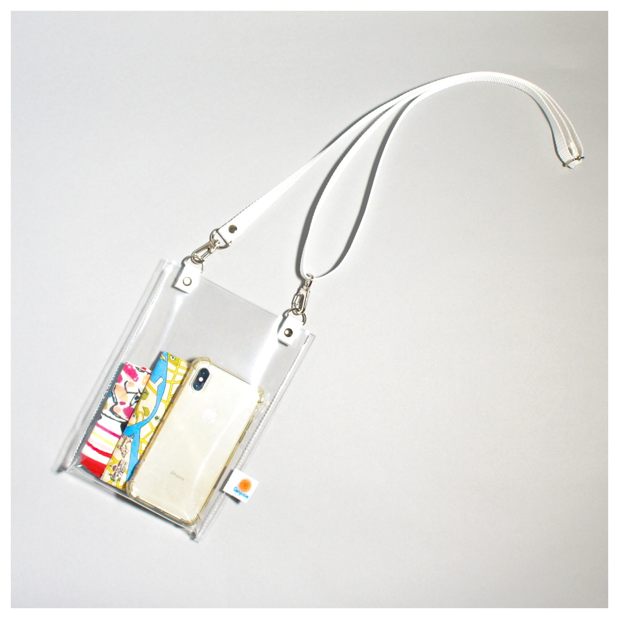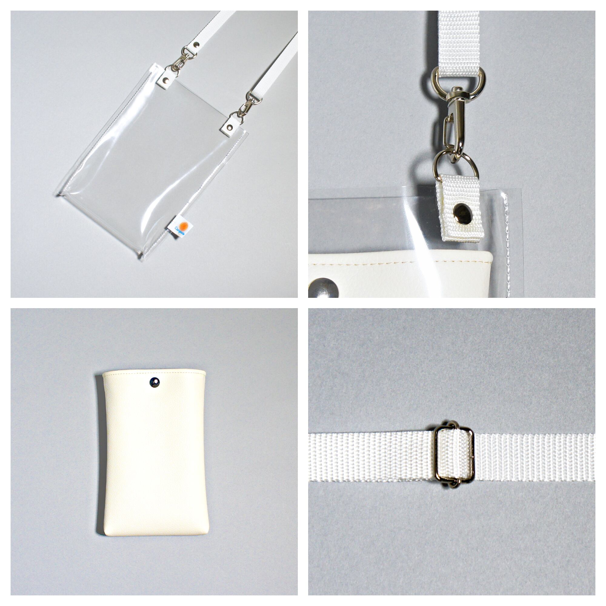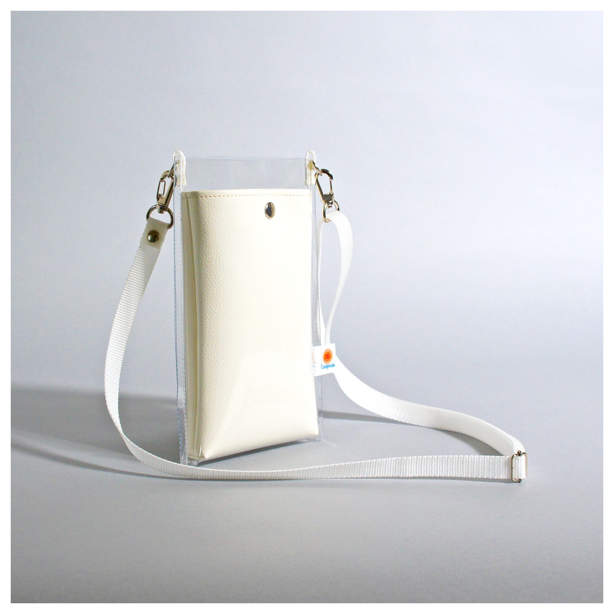 クリア&オフホワイトという爽やかなビジュアルのスマホショルダーは、