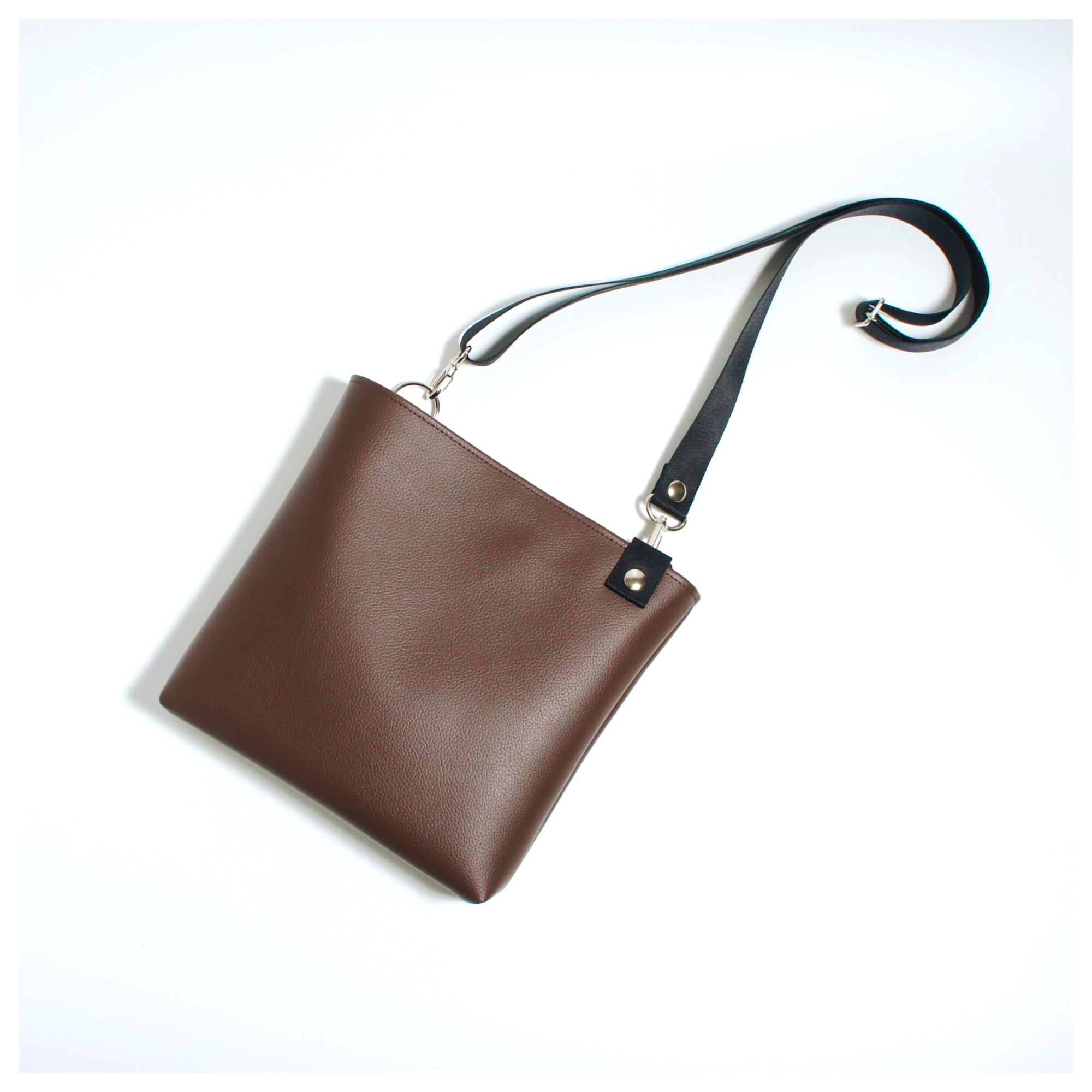 今季トレンドカラーのチョコレートブラウンのPVCレザー(フェイクレザー)を使ったサコッシュ。ほんの少し赤みがかった深いブラウンを、あなたの秋冬コーデのアクセントに!