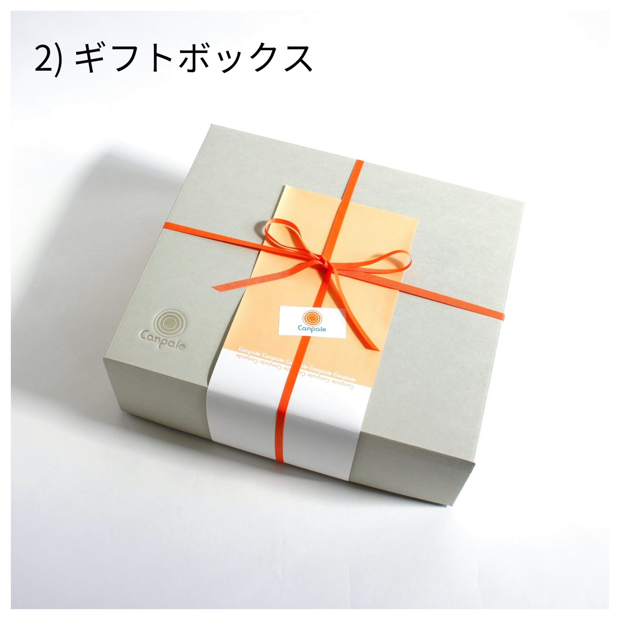 それぞれ ”簡易ギフトラッピング” と ”ギフトボックス” の2パターンがございますので、オプションよりご選択くださいませ。